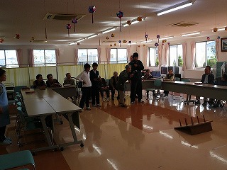 | そして,この日一番の目的アンケート調査です。 | その後は,おじいちゃん,おばあちゃんと一緒に輪投げをし,お話もしました。 |