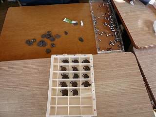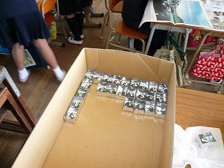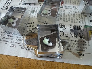 約130個作成したものの,アルミテープの貼り方が不十分で,液がもれてマスコットが出てしまっているものがいくつか見られました。 結局,なんとかできあがったのは,100個足らずでした。 100個を目標としていたので,30個の余分を作っていて正解でした。 丁寧な作業の大切さを学びました。 |