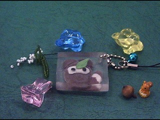PR相手とその理由 「若い女性」 たぬきを可愛く作ったのもあるけど,ストラップ等に関しては,女性のほうが買ってくれる人が多そうだし,話も広まりやすいから。 工夫したところ,いいところ 1.背景がとてもカラフルなところ。 2.ビーズやキラキラした物などを背景にしたところ。 (←クリックすると大きくなります。) |