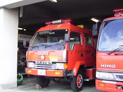 ![]() 消防車が待機しています。 |