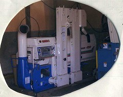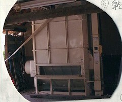 Fもみすり機 乾燥機完了の籾をお米にする機械です。 乾燥機ともみすり機を並べてセットすると煙突からすりぬか,白い角の柱の小さい筒のほうよりお米が出てきます。 |