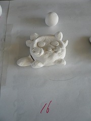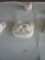 | さて,代表の作品が決まったので,この粘土模型を元にして,シリコンで型を取ることにしました。 とりあえず,量産するために,班で分担して同じものを作成しました。 |