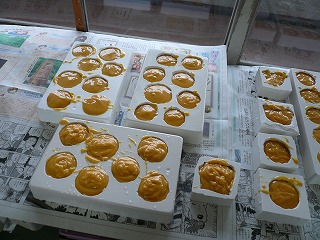 | 型に流し終わった直後から2,3週間ほど熟成させます。 | なんだか,おいしそうな色をしていますが,絶対に食べてはいけません。 |