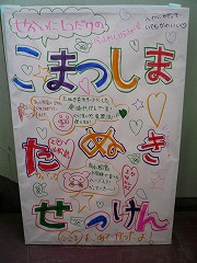 | 会場に飾った力作のポスター。「We Love こまつしま」 の文字も・・・。 | |