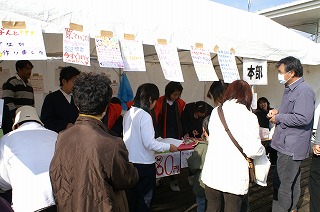 | 迎えた2009年11月29日(日)。 市産業振興課主催イベント「小松島うまいもん祭り」の日です。 今年もご厚意で本部席テントの一角をお借りし,販売活動をすることができます。 |
