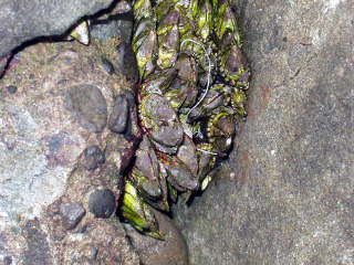 | 亀の手の形によく似ている。 岩にくっついている。 先のほうが固い。 |