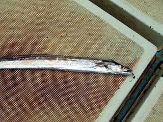 | 南蛮漬け 3枚におろし,3センチぐらいの大きさに切り,片栗粉をまぶして,油で揚げます。 それで,酢に漬けます。 いっしょにタマネギとにんじんを入れます 他にも一夜干し,塩焼き,煮付け,刺身などの方法があります。 |