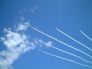 2010年度の港祭りでは,特別イベントとして,ブルーインパルスによる飛行が行われ,多くの人出でにぎわった。 |