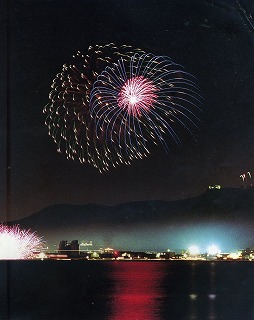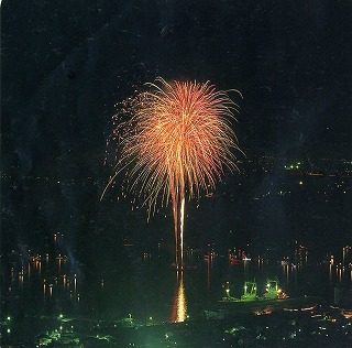 大人のアンケート調査でおすすめイベント第1位になった小松島港祭りの花火大会。 7月の海の日前後に実施され,市民は夏の訪れを実感する。 |