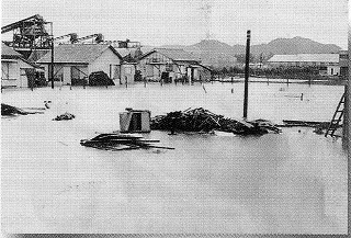 | 第二室戸台風 昭和36年9月16日に高知県室戸岬に上陸し,小松島を抜けて関西方面に進みました。 戦後最大級の台風で,大きな被害を残しました。 徳島県内では,最大風速が27.5mを記録し,高潮とあわせて,写真のような洪水を引き起こしました。 徳島県内では,床上,床下浸水あわせて6万戸を超えたそうです。 |
