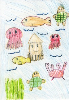 小松島の豊かな海を生かして,様々な海の生き物が見えるようにします。